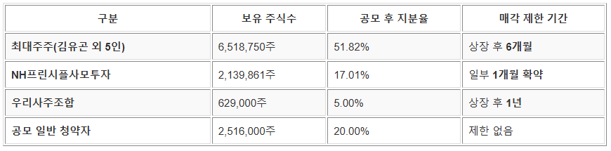 💡 유통 가능 물량이 전체 지분의 35.68%로, 초기 주가 변동성이 클 가능성 있음