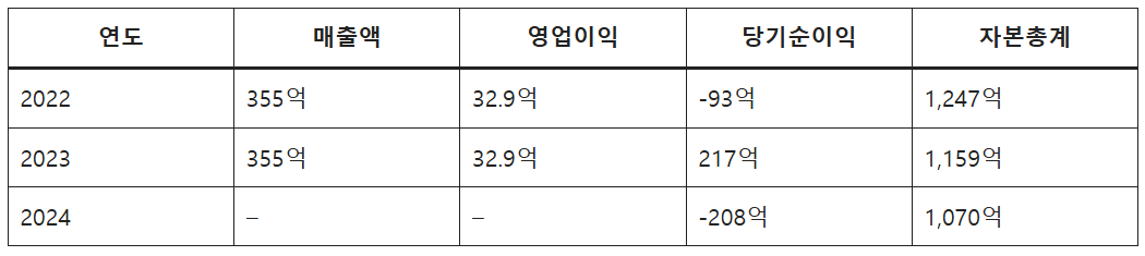 ※ 실적 변동성이 크며, 2024년 잠정 실적 기준 적자 전환 상황입니다.