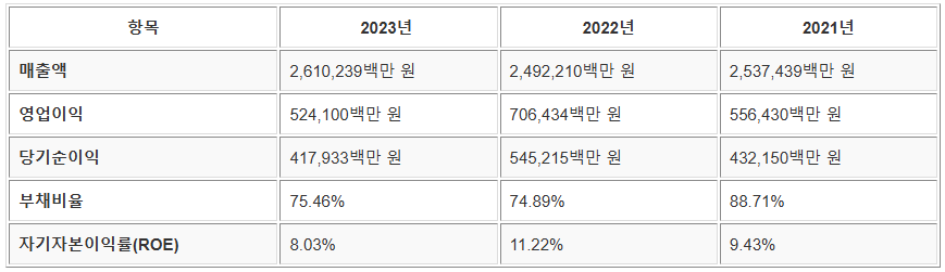 주요 재무 지표 (2023년 기준)