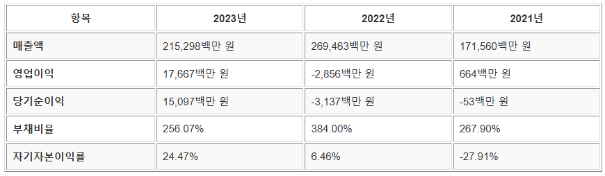 - 2022년 적자 → 2023년 흑자로 수익성 개선