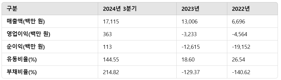 회사는 매출 증가세를 보이고 있으나, 여전히 영업이익률과 순이익은 개선이 필요합니다. 2024년에는 영업이익이 흑자로 전환되며 점진적인 수익성 회복이 기대됩니다.