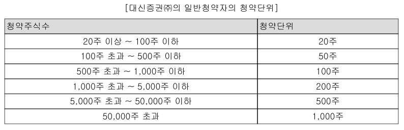 대신증권 일반청약자 청약 단위